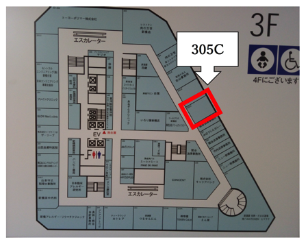 | 道案内 | 新橋駅日比谷口(JRの正式名称:土橋口)を出ると、SLがある広場「SL広場」が見えますのでその広場に隣接する網がかかったようなデザインのビルがニュー新橋ビルとなります。 ☆3階フロアー案内図で「305C」位置をご確認ください。 |