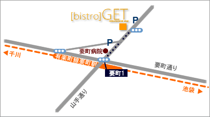 | 場所 | [bistro] GET (ビストロ ゲット)【WEB】 東京都豊島区要町1‑13‑9 TEL 03-3959-5840 *駐⾞場はございません。お近くのコインパーキングをご利⽤ください* |